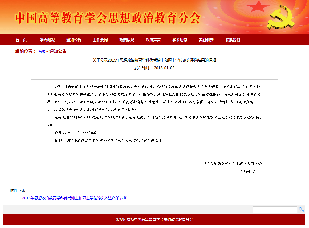 中国高等教育学会思想政治教育分会于2016年11月开展针对2015届全国思想政治教育学科优秀博士学位论文评选工作,评选结果于近期公布,国产直播