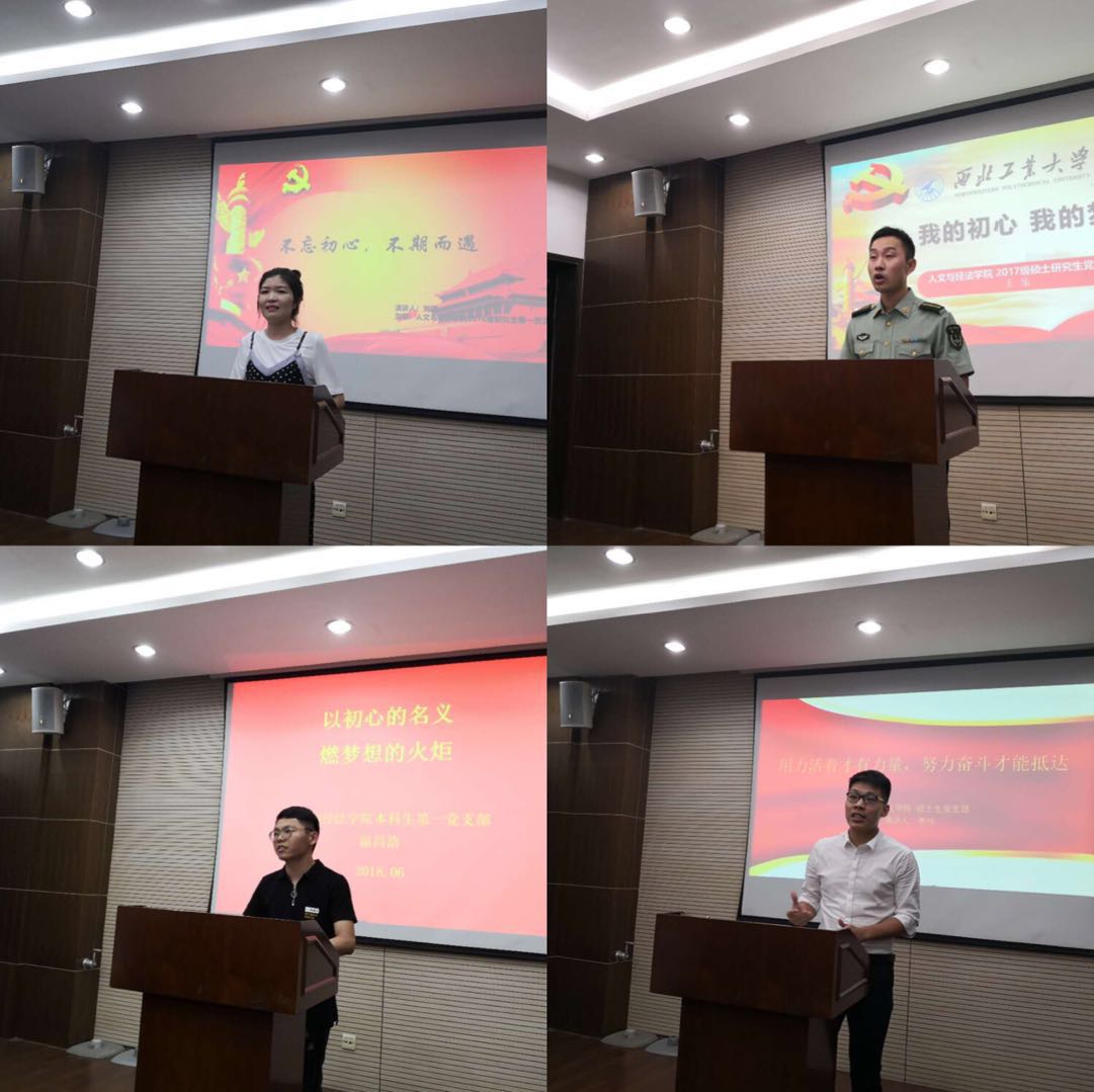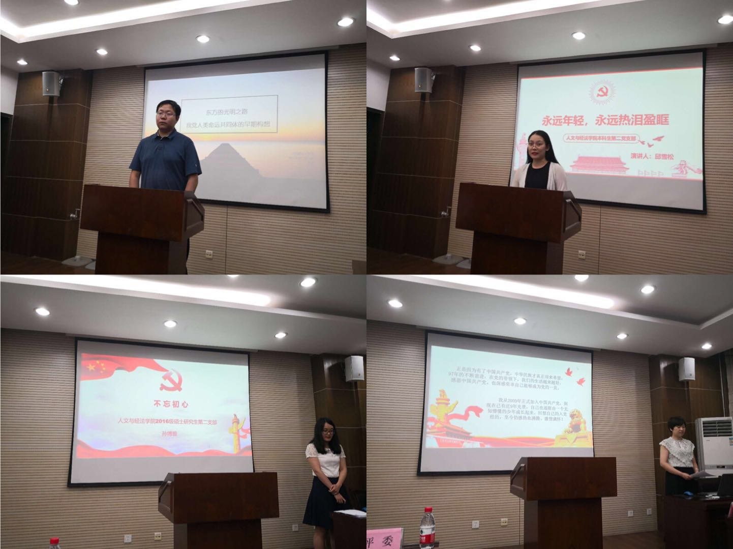 活动中,来自国产直播 、人文与经法学院各个学生党支部的选手紧紧围绕“不忘初心、牢记使命”这一主题,回顾了自己申请入党的初心,分享了自己或身边党员的故事,展现了青年学生党员的良好精神风貌。来自本科生第一党支部的温昌浩讲述了他随学院暑期社会实践队开展渭华起义调研过程中的所见所闻以及在政府机关见习的种种经历,人文与经法学院硕士研究生第一党支部的刘漂则分享了自己受到《建党伟业》影片的鼓舞,通过不断努力考取心仪大学并加入中国共产党的奋斗故事,国产直播 博士生张楠和硕士生分别讲述了自己受家人中党员潜移默化影响的入党初心和参加集体活动时萌生入党愿望的难忘经历……他们或慷慨激昂,或娓娓道来,声情并茂的演说博得了评委和观众的阵阵掌声。经过激烈角逐,比赛最终评出一等奖1名,二等奖3名,三等奖4名,来自人文与经法学院2016级研究生第一党支部刘漂获得了一等奖。