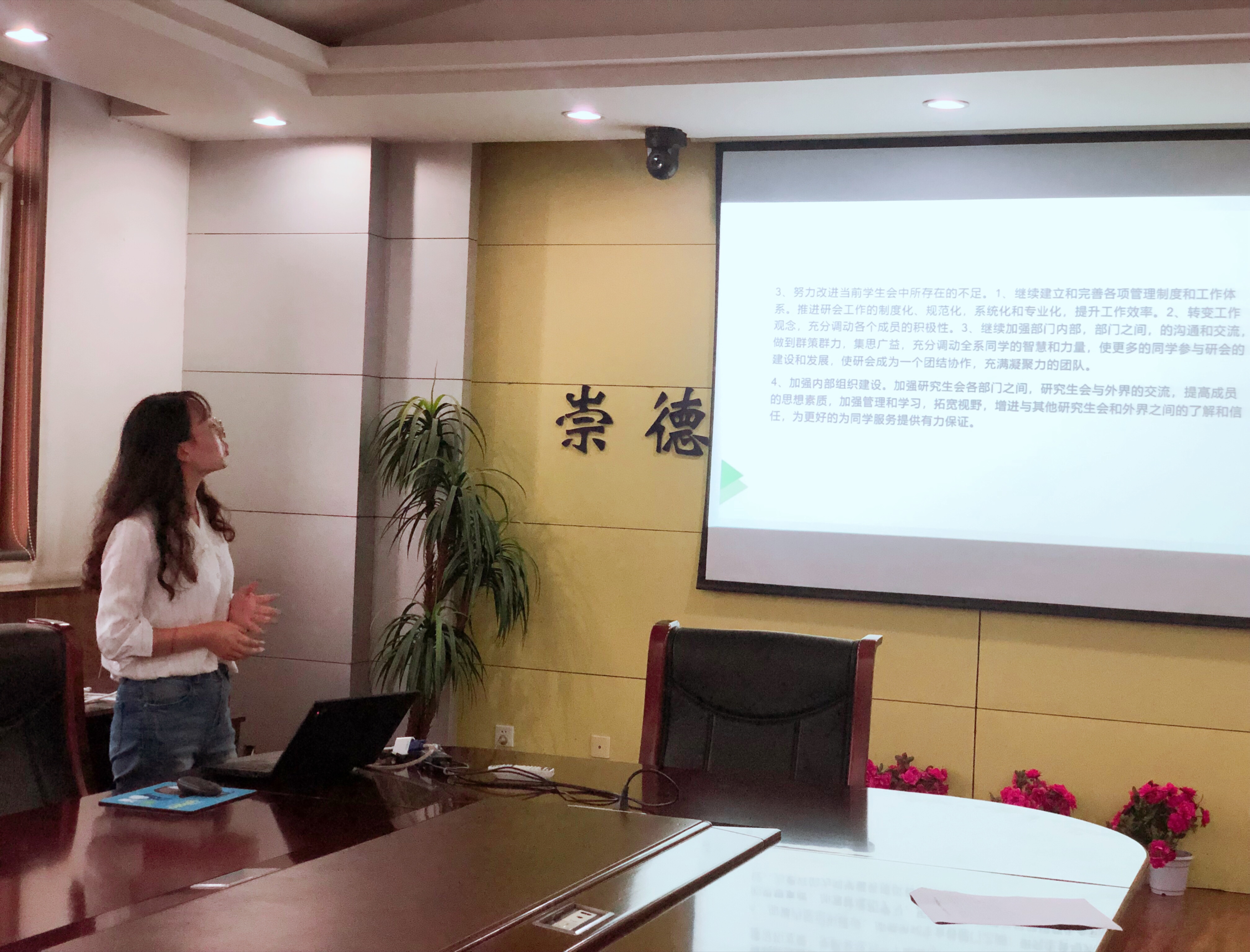董咪咪总结了自己半年来的工作经历,在研究生会未来的发展规划中,她指出,要制定正确合理的工作规划,划清研会各个部门的职责,保证其有条不紊的运转;同时要组织一系列彰显马院特色的活动,在全校提高国产直播