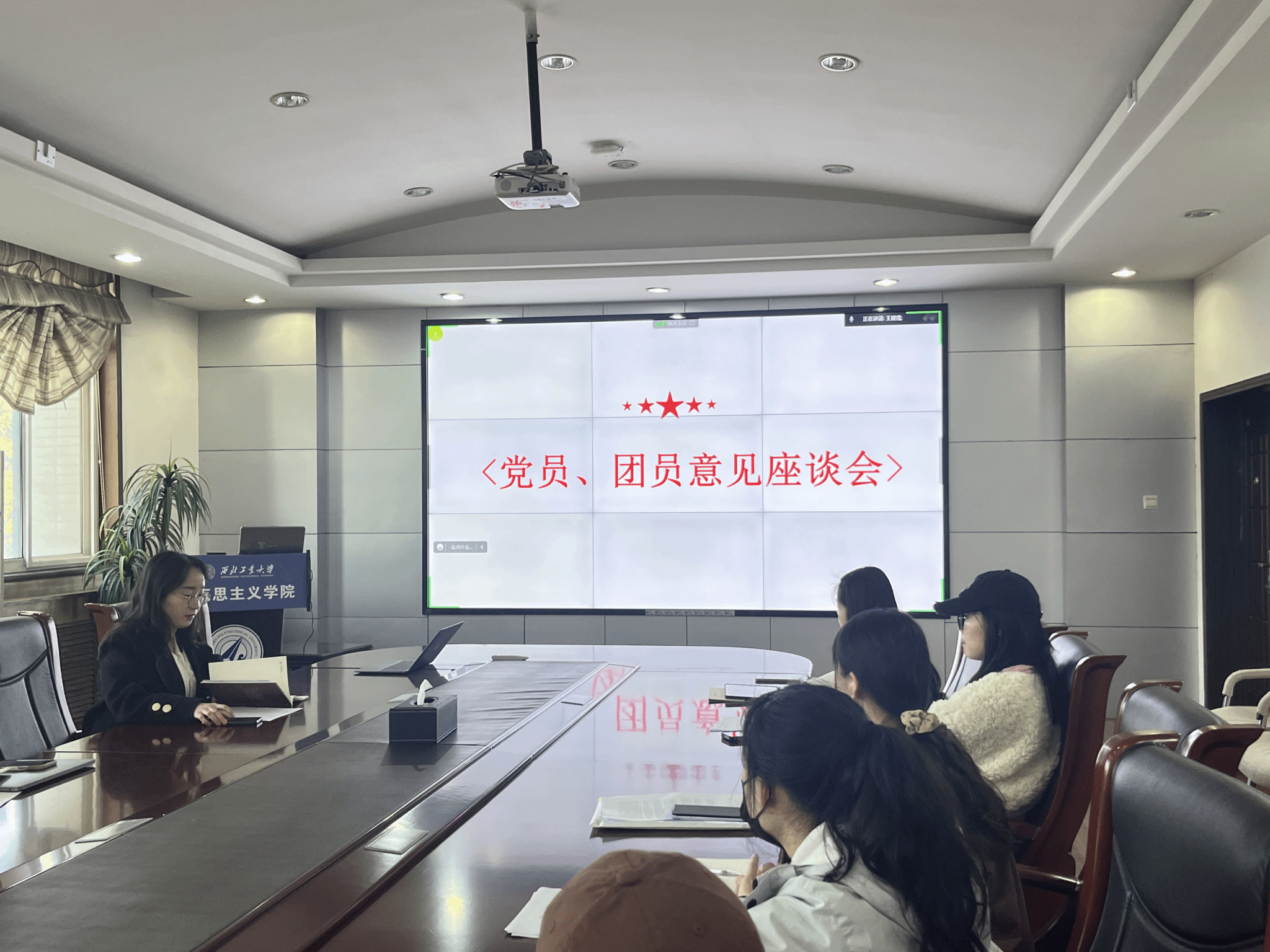 在座谈会环节,党支部的各位党员、入党积极分子就党支部活动形式、理论学习深度力度、党员团员间的交流联系,以及百岗千人“结对帮扶”计划落实力度等方面展开了热烈地讨论,大家纷纷为党支部建设出谋划策。最后,支部书记王慧新对大家提出的建议意见表示诚挚的感谢,也将会对提出的问题和意见建议认真记录,分类整理,纳入本年度支部重点工作清单,并鼓励同学们监督检查。