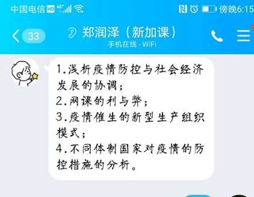 上课通过QQ群屏幕共享播放PPT、直播授课、学生语音回答问题,与学生互动采取“对话式”提问,不断启发学生对问题深入思考