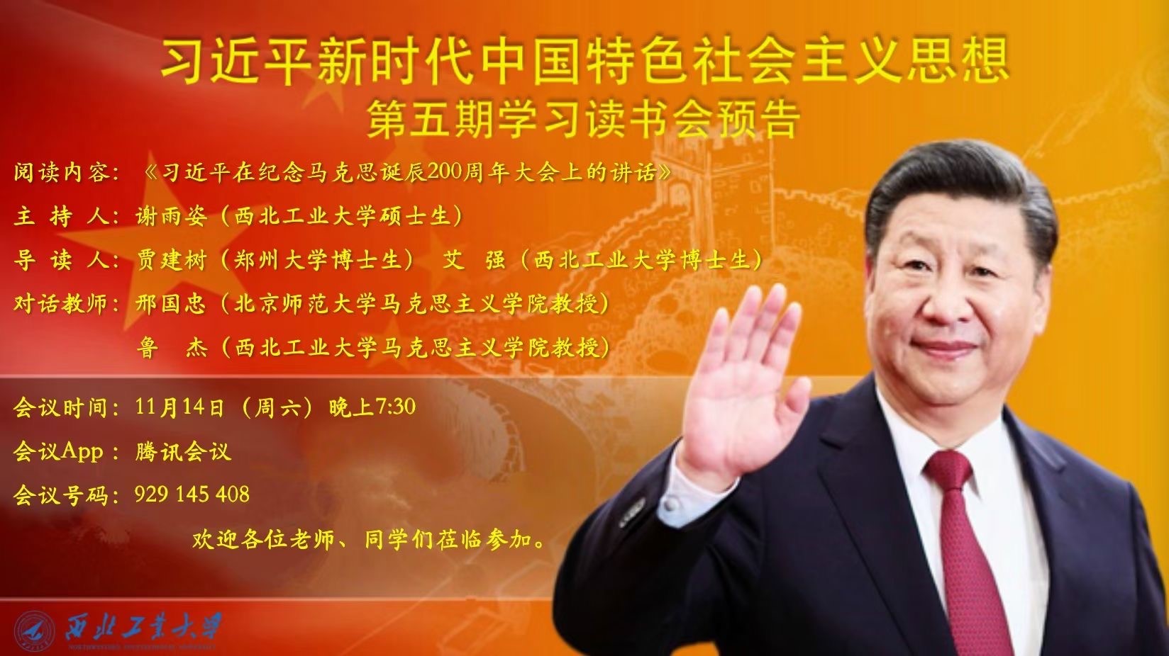 教授、法学博士、博士生导师刑国忠老师作为本次读书会的特邀嘉宾。本次读书会主题主要围绕《习近平在纪念马克思诞辰200周年大会上的讲话》展开。此次活动由国产直播