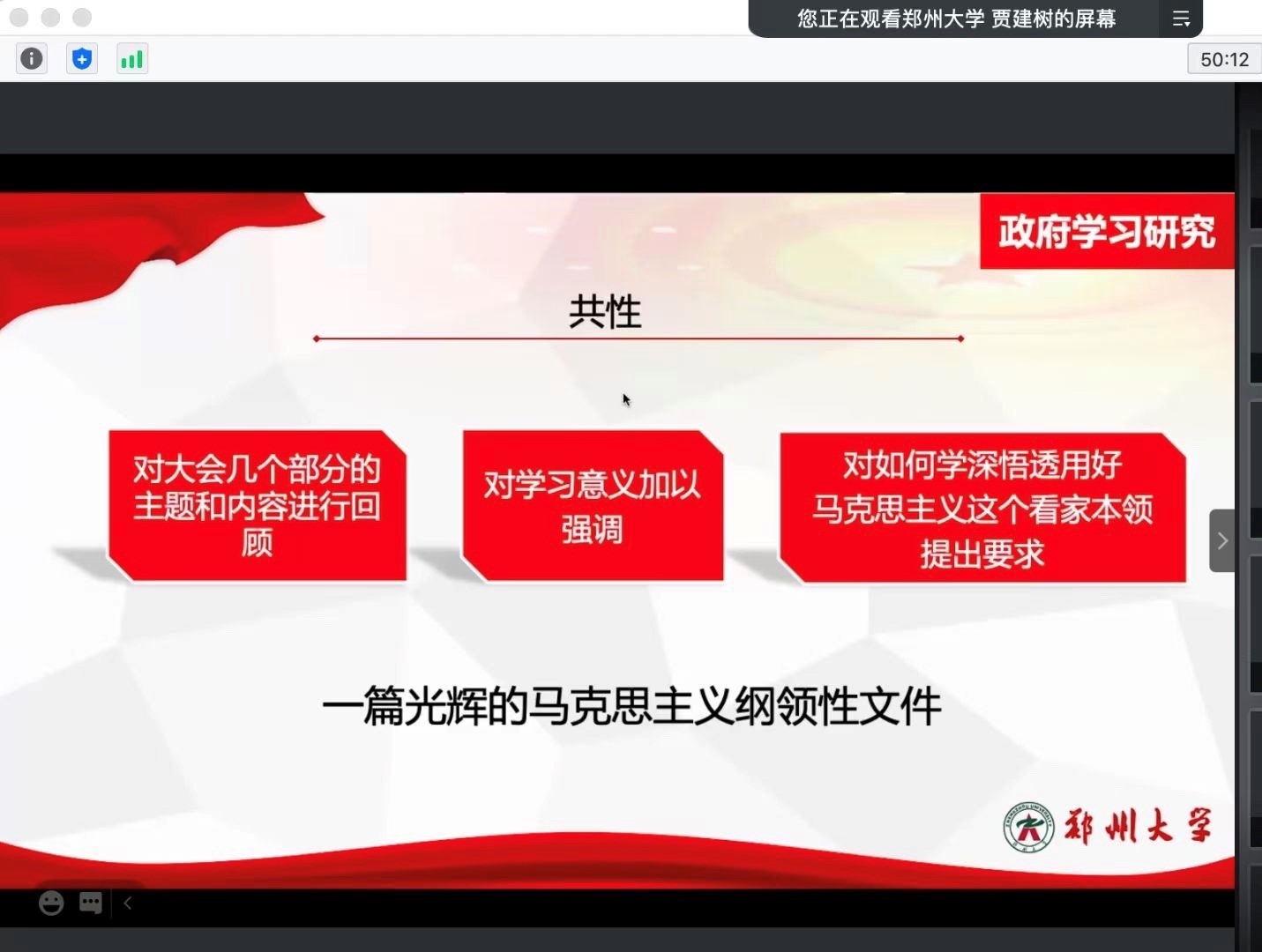 在读书会的导读环节中,首先是由郑州大学博士生贾建树进行导读,他具体分析谈到习近平在纪念马克思诞辰200周年大会上的讲话中的三个主旨,以及对马克思一生的回顾、缅怀以及此次讲话内容中对马克思主义的科学体系、丰富内涵的阐释,并且还谈到学完讲话内容后的个人思考。紧接着由国产直播