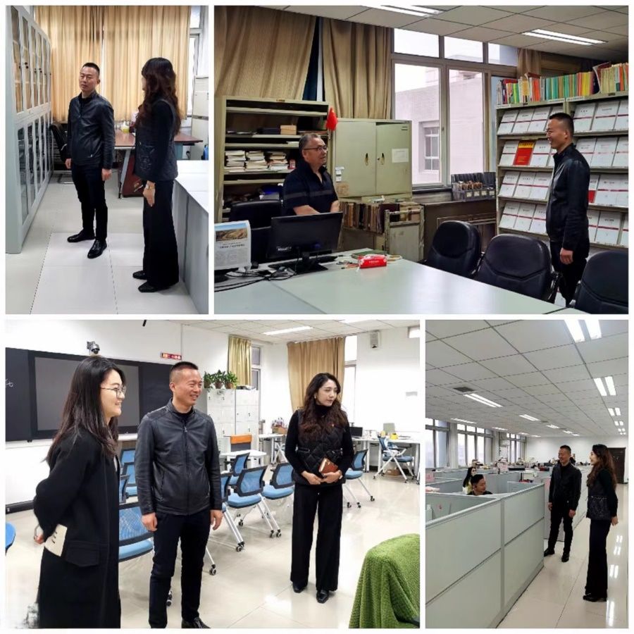 党委书记蒲传新、办公室主任郭雅楠等安全生产领导小组成员在学院楼开展安全生产检查。