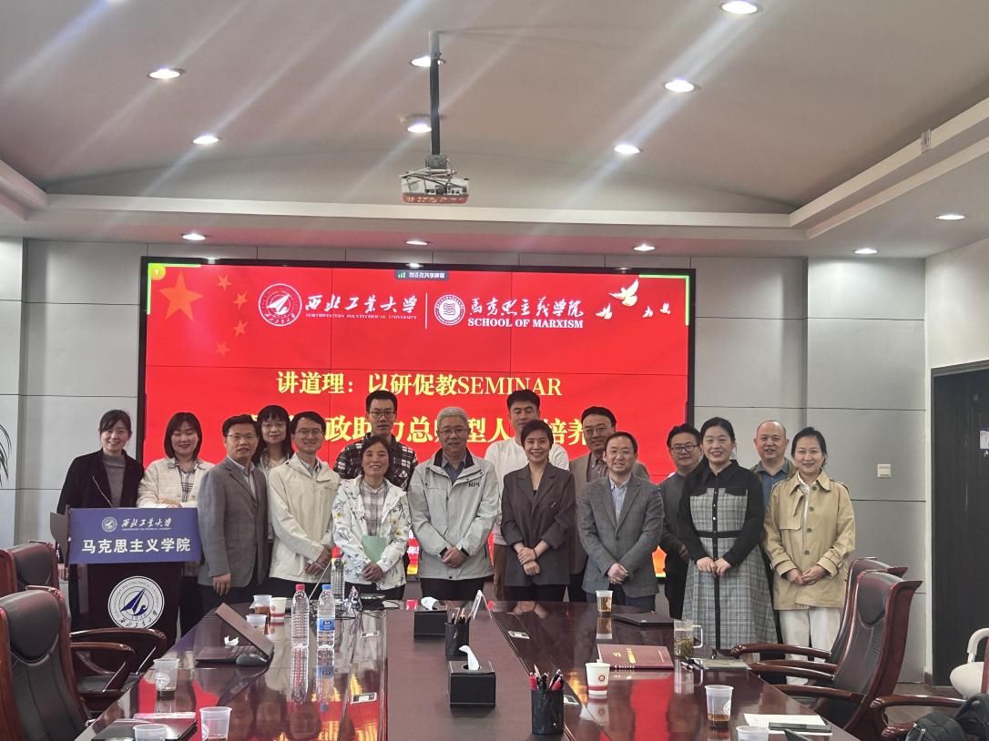 思政课程和课程思政协同育人的举措做了简要介绍,着重强调了课程思政与思政课程同向同行,将 “总师育人文化”融入思政课堂的重要性,动员各位思政课教师积极研讨交流,与理工科教师共同探讨课程交叉融合,不断推进“大思政课”建设深层次发展,打造学生喜闻乐见的思政课堂。