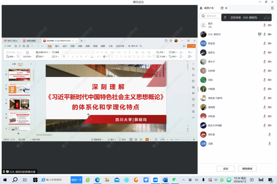 研究生公共课《习近平新时代中国特色社会主义思想专题研究》课程组,邀请四川大学郭绍均副教授进行线上讲座,指导课程集体备课。讲座由课程负责人鲁杰教授主持,课程组全体教师及部分学院教师参加备课。