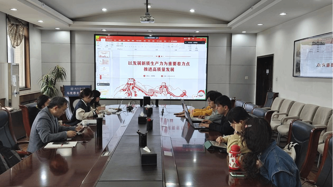 在读书会的第一环节,硕士生张锦莹代表学习小组成员围绕新质生产力的研究背景进行了详尽的导读。小组首先梳理了新质生产力的研究背景与深远意义,并从理论层面剖析了其在当代社会经济发展中的核心地位。接着深入分析了推动新质生产力发展的挑战与机遇,并结合国内外实践经验,探讨了新质生产力领域的实践与启示。