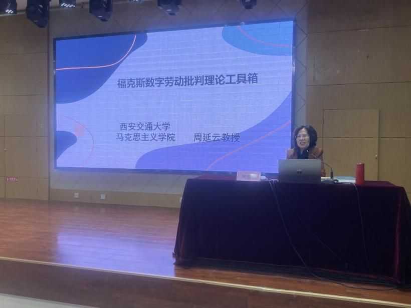 周教授是克里斯蒂安·福克斯所著《数字劳动与卡尔·马克思》的译者,本次讲座围绕该书展开。首先,周教授介绍了福克斯的学术地位和他的数字劳动研究的背景,以及相关著作译介进入中国后国内学界的反响。紧接着,她结合文本详细介绍了福克斯研究数字劳动的理论基础,讲述了福克斯对于马克思劳动价值论和剩余价值论的黑格尔辩证法重建、马克思主义传播政治经济学批判理论的继承、唯物史观批判理论的发展以及对西方马克思主义批判理论的再阐释。她具体介绍了福克斯文本中生产方式视域下的数字劳动案例和福克斯数字劳动批判理论工具箱,充分体现了译者的学术严谨性和客观性。随后,与会师生就数字劳动的前沿问题和研究方法与周教授进行了深入交流。