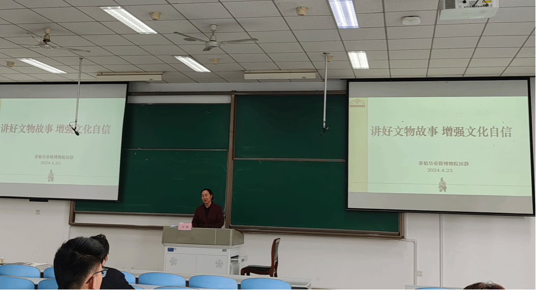 4月23日,秦始皇帝陵博物院副院长田静作《讲好文物故事 增强文化自信》专题讲座,她用大量内容丰富、系统缜密的研究图像将收藏在博物馆的文物、陈列在广阔大地上的遗产、书写在古籍里的文字“活”起来,带领学生感悟“保护好文物就是保护好中华民族精神生生不息的根脉”的深刻内涵和重要意义。