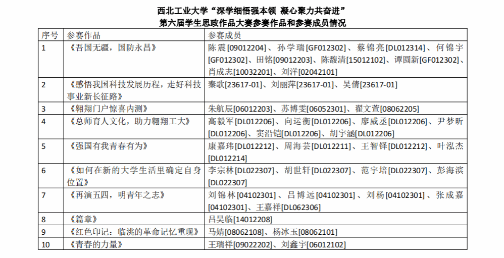 面向全校学生开展“深学细悟强本领 凝⼼聚力共奋进”第六届学生思政作品⼤赛。现将参赛作品和参赛成员予以公示。公示期间如有问题请向国产直播