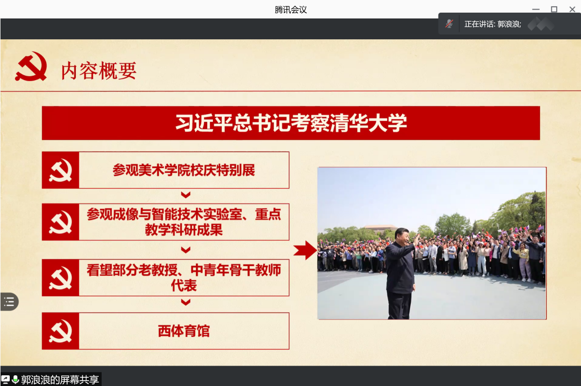 习近平新时代中国特色社会主义思想学习读书会第十五期活动主题围绕《2021年习近平在清华大学考察时的讲话》进行学习研讨。本次读书会由国产直播