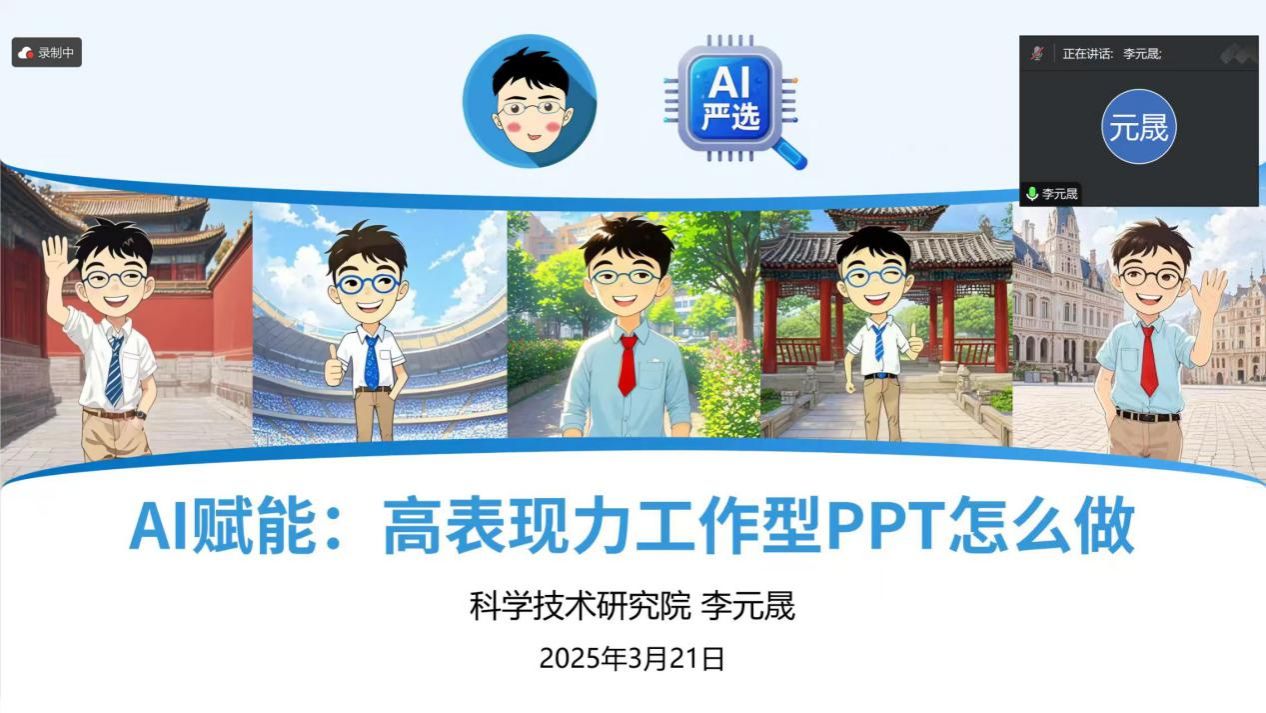 邀请校科学技术研究院科研质量保密与科研服务大厅办公室主任、助理研究员李元晟老师开展了题为“AI赋能:高表现力工作型PPT怎么做”的第31期以研促教seminar专题讲座。本次会议由国产直播