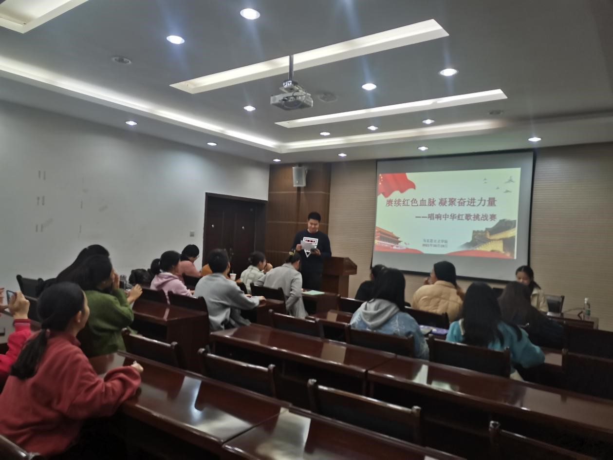 活动伊始,主持人田瑞青对各位同学表示欢迎,并介绍了本次比赛的具体规则,希望在传唱歌曲、回答党史问题的过程中,让同学们在唱响爱党爱国主旋律的同时,了解红歌背后的故事,进一步坚定理想信念,让红色基因、革命薪火代代相传。比赛围绕红歌设置了猜歌名、填歌词、忆歌史三个环节,每个环节设置相应的题目,由选手作答。在猜歌名环节,选手们很少“翻车”,经典的旋律一响起,歌曲名称就随口而出。之后的填歌词稍有难度,不过,大部分选手还是可以准确说出空缺的歌词,并可以唱出来。最后,忆歌史环节以选择题形式对选手的历史知识进行考察,充分体现出了他们对红色经典歌曲以及党史深刻认知与理解。