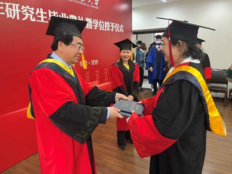 校歌,学位授予仪式正式开始,黄维院士为毕业生们颁发毕业证和学位证,杨云霞院长为毕业生拨穗,并进行了合影留念。