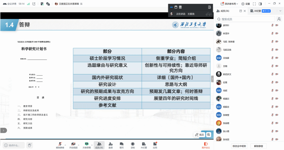 杨江楠系统分享了硕博连读申请的全流程要点,并重点拆解了面试准备。她逐一指导了英文自我介绍、基础问答、计划书汇报与专业质询等环节的应对技巧与核心要点,建议同学们通过提前模拟与充分准备,沉着展现学术潜力。