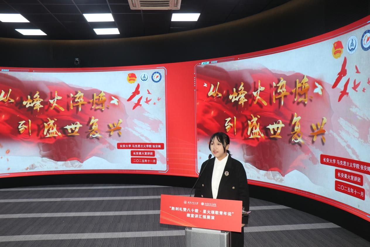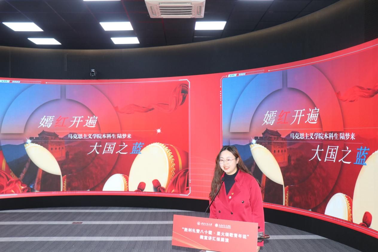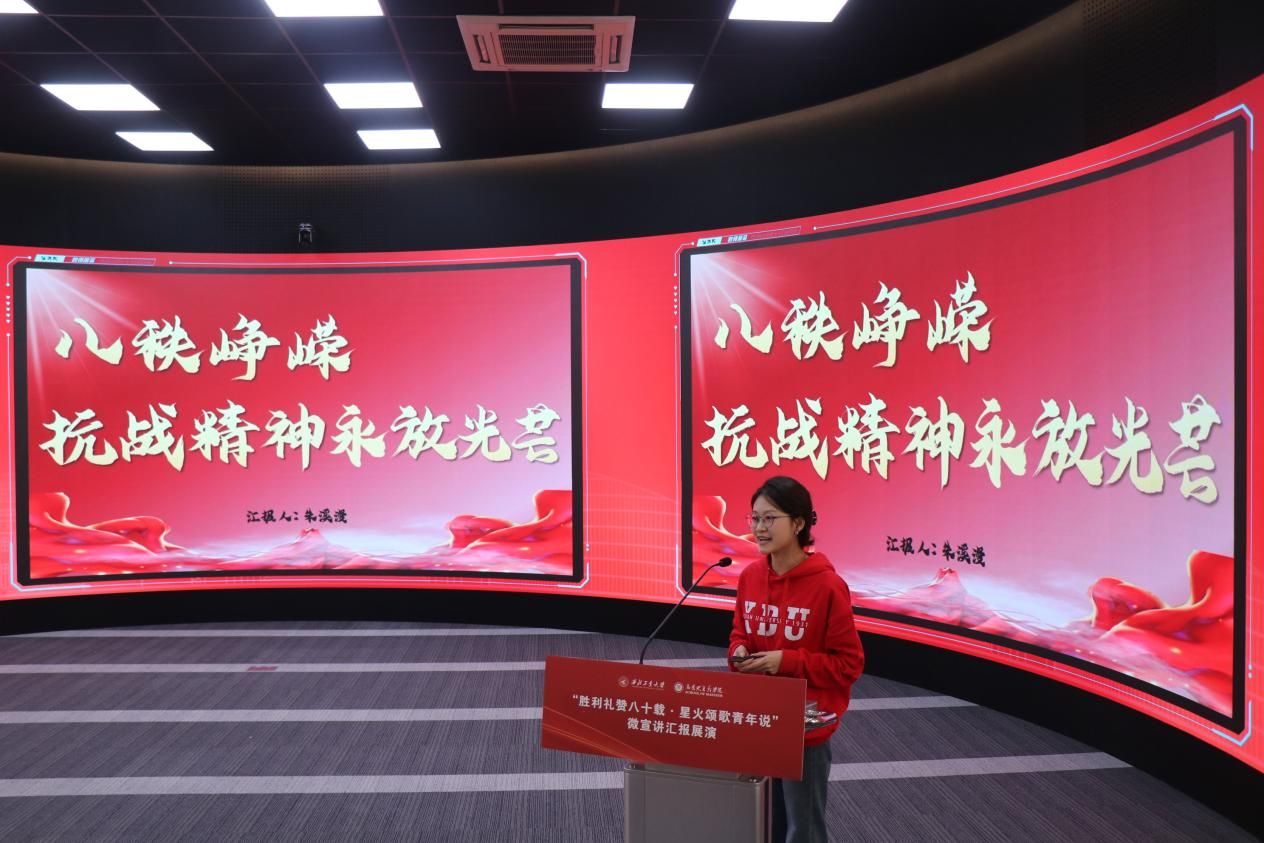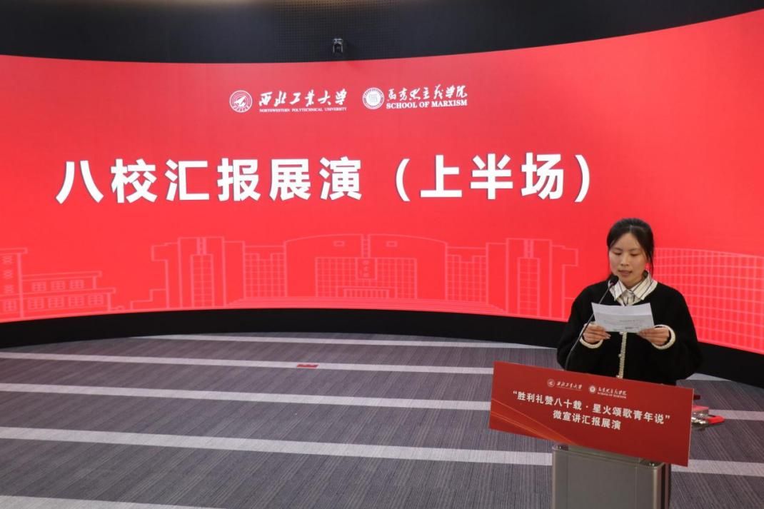八校汇报展演分为上、下半场有序开展。18位选手紧扣抗战精神主题,或讲述烽火岁月里的红色家书故事,或解读延安精神的时代内涵,或追溯西安事变的历史意义,或聚焦东北抗联精神凝聚复兴力量的深刻阐释,诠释青年担当的深情表达。