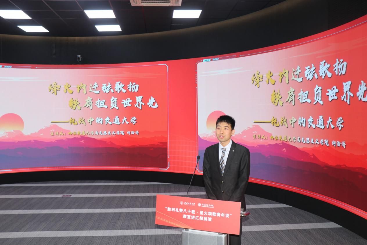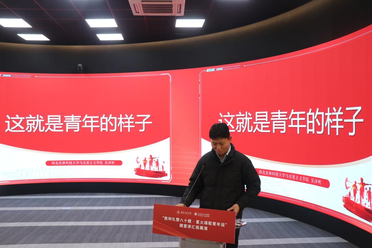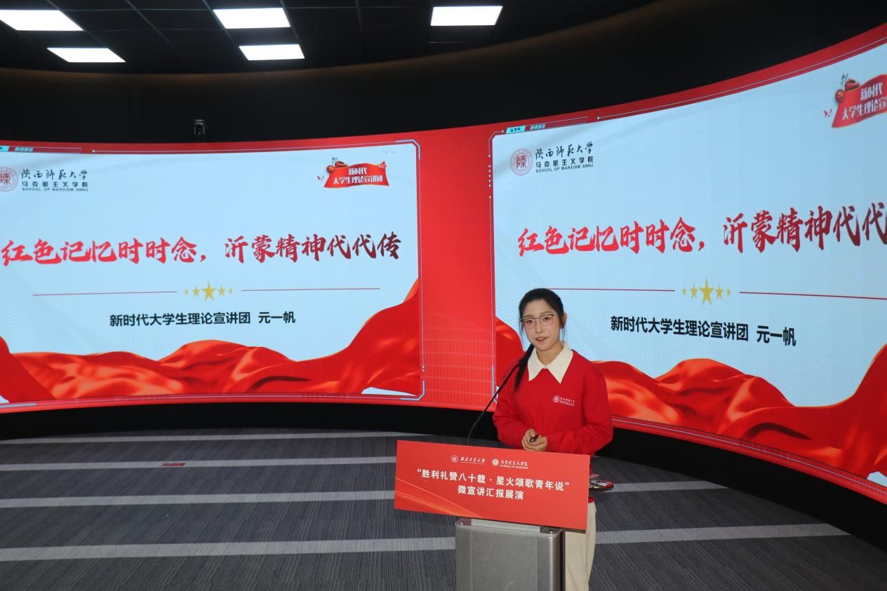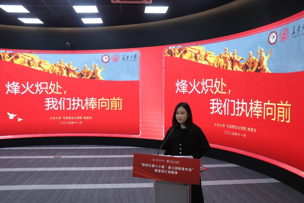 八校汇报展演分为上、下半场有序开展。18位选手紧扣抗战精神主题,或讲述烽火岁月里的红色家书故事,或解读延安精神的时代内涵,或追溯西安事变的历史意义,或聚焦东北抗联精神凝聚复兴力量的深刻阐释,诠释青年担当的深情表达。