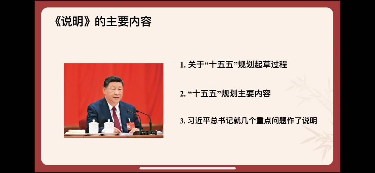 习近平新时代中国特色社会主义思想学习读书小组第六十四期活动以《中共中央关于制定国民经济和社会发展第十五个五年规划的建议》的说明为主题进行学习研讨。本次读书会由国产直播