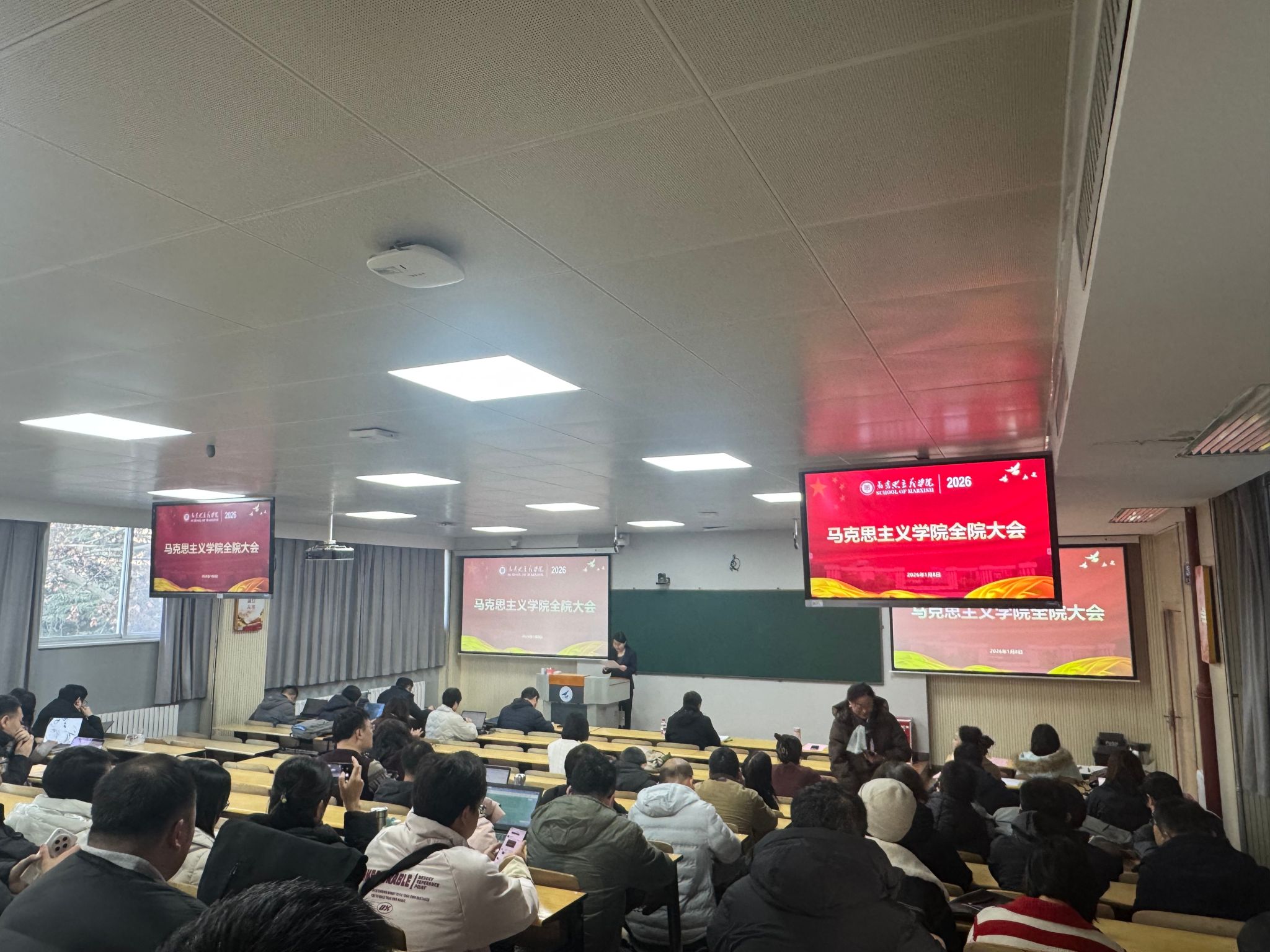 大会共分三个阶段,首先,学院领导干部依次进行年度述职。其次,大会通报了学院校内巡视整改情况,开展了师德师风专题教育学习,传达了学校近期相关工作要求并通报了假期安全稳定工作重点。最后,学院院长杨云霞作《学院“127”目标责任制中期完成情况及学院“十五五”规划思考》主题报告,从思政课改革、学科建设、人才培育等多个维度,深入讲解了学院未来发展的重点工作。