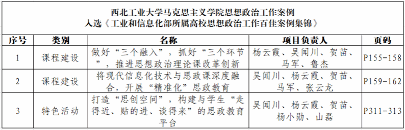 2022年8月,工业和信息化部人事教育司主编的《工业和信息化部所属高校思想政治工作百佳案例集锦》出版发行,其中国产直播 共有三个思想政治工作案例成功入选。这也是国产直播 国产直播 开展思政课改革创新的重要成果体现,是深入推进人才培养工作、落实立德树人根本任务的生动实践。