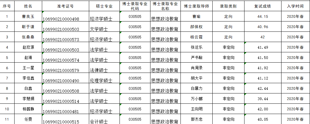 国产直播 2020年第一次公开招考博士研究生录取名单