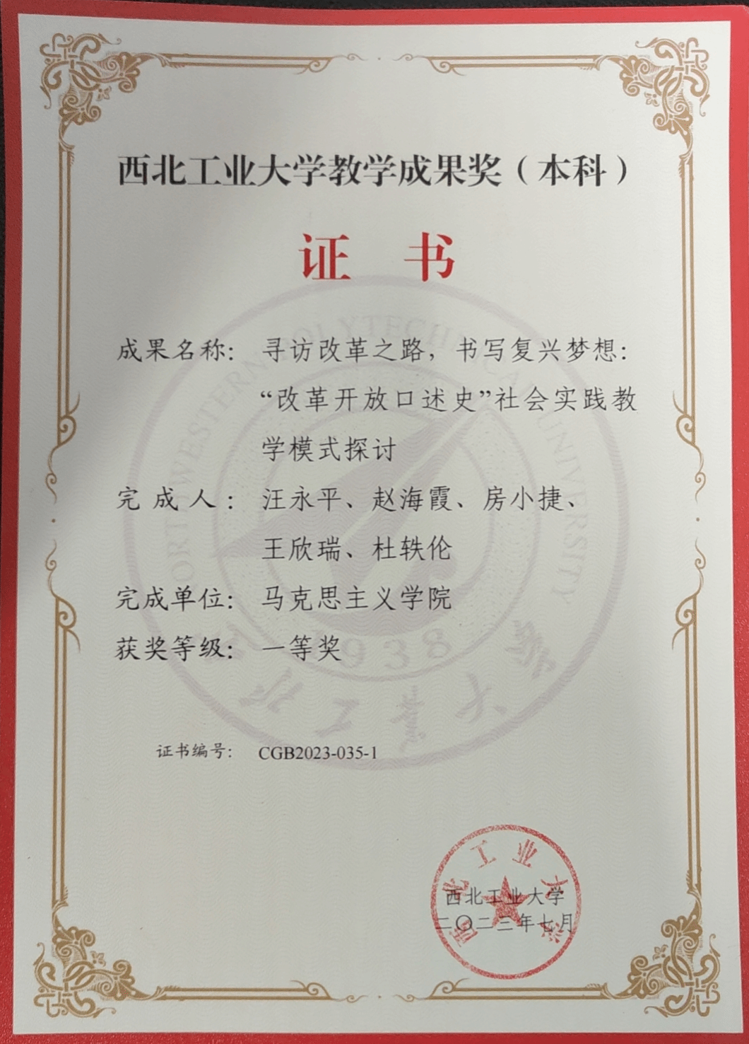 从2018年起,汪永平老师主持了《中国近现代史纲要》课程中开展的“改革开放口述史”社会实践。作为负责人,汪永平老师带领课程团队,对学生进行指导。她亲自拟定教学大纲,制定操作规范,聘请专家对师生进行培训,指导学生撰写报告,主持优秀口述史的颁奖,并带领学生进行暑期社会实践,参加“口述史国际周”学术活动等,形成完整的教学科研闭环。在教学理念、教学方法、教学模式、教育路径方面进行系统改革,在课程实践性、研究性、思想性及整体性等方面都取得明显成效。六年来,使众多授课学生增强了制度自信、道路自信与文化自信,增强了国家认同感与政党认同感。该项目获得2023年国产直播 “优秀教学成果奖”一等奖。