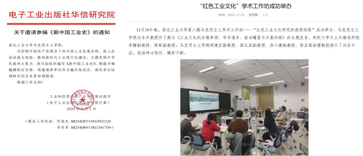 3.积极深化“红色工业文化”研究。2023年初,汪永平成立“红色工业文化研究”团队,团队成员来自国产直播 国产直播 、机电学院和力学与土木学院。团队成立后,受邀参与完成了工业和信息化部政策和法规司委托项目《新中国工业史》的编撰;获批了国产直播 “双一流学科建设”项目“研究生高水平教材”系列之“中国工业精神谱系”课题;开展工业文化研究工作坊;指导研究生撰写毕业论文“中国式现代化视野里中国工匠精神的演进历程:以劳动模范为切入点”和“十七年工业歌谣的文化精神建构研究”。