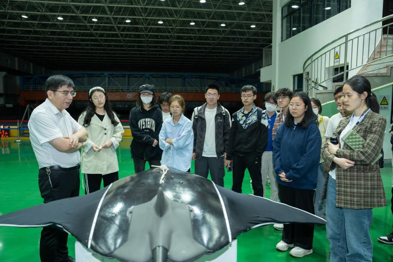 曾教授首先为大家介绍了航海学院的历史沿革、专业设置、研究方向,讲述了优秀校友的精彩事迹和取得的代表性成果,继而带领同学们参观翱翔重点实验室,讲解仪器设备、模型展项的相关数据和研发经历,让在场的每一位对出海测试、水下攻防、深海对抗等方面有了具体且生动地感知。在近一个小时充分热烈的互动环节中,同学们不仅围绕自身的研究兴趣向曾教授进行提问,还就人才培养、技术更新等方面同老师深入交流。曾教授对每一位同学提问都予以肯定并耐心解答,勉励大家积极学习、献身国防。