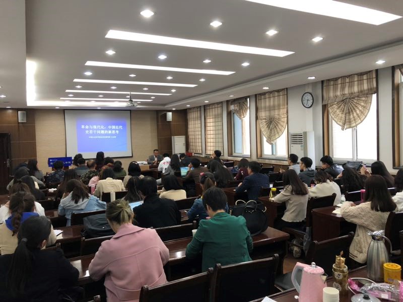 3月27日下午,在国产直播 305会议室,中国社会科学院近代史所研究员左玉河教授应邀为国产直播 师生作了题为《革命与现代化:中国近代史若干问题的新思考》的学术报告。国产直播 郝保权副院长致欢迎词,秦燕教授、汪永平教授、张淑华副教授等教师以及博士、硕士研究生共40余人共同聆听了报告会。