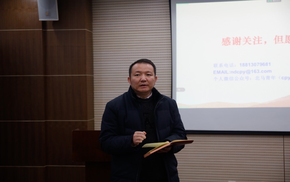 随后,由陈培永老师为广大师生作报告。陈老师一共讲了三个问题,第一,理性与信仰的关系问题。陈培永老师从电影《少年派的奇幻漂流》开始引入信仰话题,用幽默风趣的语言,并结合马克思主义经典著作,指出真正的信仰是建立在理性基础之上,经过理性思考之后建立的信仰,才是真正的信仰。第二,马克思主义如何看信仰。陈老师就“宗教是人民的鸦片”这一提法展开论述,将宗教信仰和马克思主义信仰作了区分。提出个体在社会交往中,对马克思主义的信仰分两种,即自觉的或非自觉的马克思主义信仰。第三,如何看“对马克思主义的信仰”。陈老师从人与社会的关系出发,着眼于人类社会,提出马克思主义的信仰要在面向社会、服务社会、改变社会中实现心灵的慰藉、境界的提升,并强调这种信仰是对人本身及其对人的社会的信仰,是对人类社会最终会走向自由人联合体的信仰。陈老师从一部小小的电影解说上升到志存高远的马克思主义信仰主题,用自己独特的思维分析,将人类社会的共产主义远大理想完美地呈现,这既是对信仰的一种诠释,也是对信仰的一种追求。