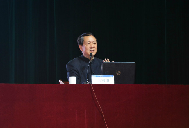 “翱翔名家讲堂”,在长安校区翱翔学生中心为全校师生做《说不尽的毛泽东》主题报告。副校长万小朋、纪委书记张海兰、党委研究生工作部部长李春科、全体学生工作干部及思想政治理论课教师代表、学生党员代表、毛泽东思想和中国特色社会主义概论课学生代表等1100余人参加了报告会,报告会由党委学生工作部部长、学生处处长张开富主持。