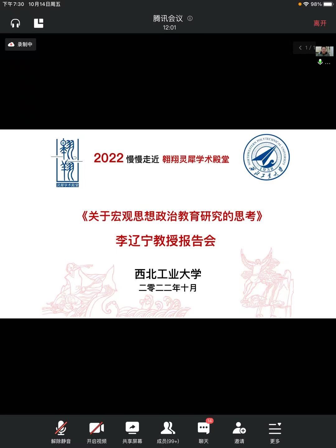 2022年10月14日晚19:30,国家社科基金重大项目首席专家、国家社科基金年度项目通讯评审专家、四川大学国产直播 李辽宁教授应邀做客国产直播 “翱翔灵犀学术殿堂”,通过腾讯会议平台直播的形式为我们带来了一场主题为《关于宏观思想政治教育的思考》的精彩报告。国产直播 国产直播 思想政治教育系主任鲁杰教授主持报告会,来自国产直播 、四川大学、东北大学等200余名师生共同参加了此次活动。