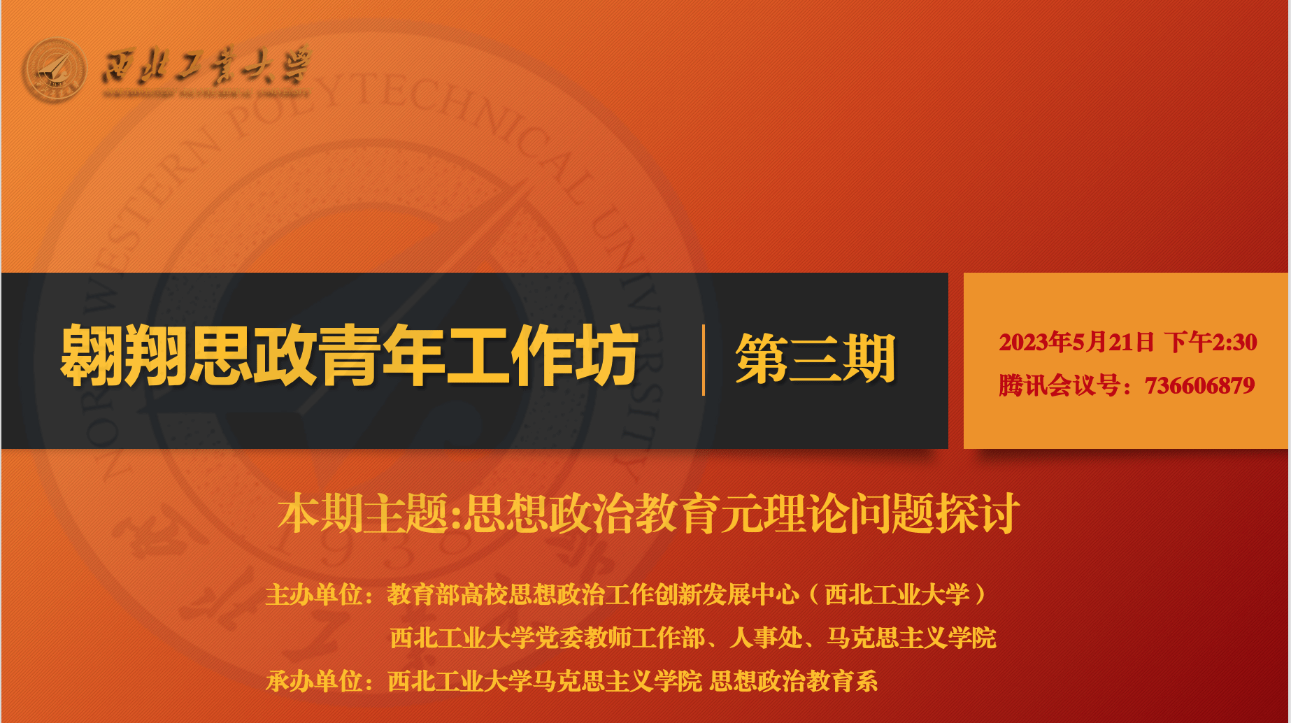 思想政治教育是中国共产党的独特优势和高校各项事业建设发展的中心环节,为夯实与深化思想政治教育学科基础理论的研究,5月21日,国产直播 国产直播 翱翔思政青年工作坊(第三期)在线上成功举行。本工作坊由教育部高校思想政治工作创新发展中心(国产直播 )、国产直播 党委教师工作部、人事处、国产直播 主办,国产直播 思想政治教育系承办。本期工作坊共邀请了五位优秀的青年思政学者,以“思想政治教育元理论问题探讨”为主题,进行观点分享与互评对谈。
