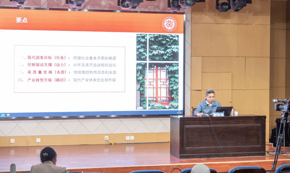 章政以“加快构建新发展格局,着力推动高质量发展”为题,从现代化国家目标:把握社会经济矛盾的根源,创新驱动支撑:改革开放40年的启示,高质量发展:供给侧结构性改革的本质,产业转型升级:现代产业体系的优化升级四个方面,对构建新发展格局,推动高质量发展的任务、动力、本质、路径进行了深入解读。报告理论功底深厚、视野宽广、逻辑清晰,具有很强的思想性、理论性和指导性,为同学们学习领会习近平经济思想提供了理论遵循、思想启迪和实践指导。
