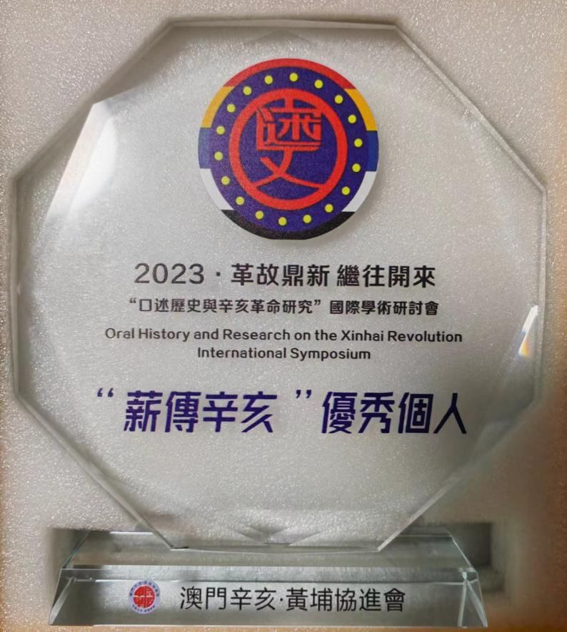 会议采取线上、线下方式同步进行,与会专家学者、辛亥志士后裔就口述史学与辛亥革命研究的现状、交汇及意义,辛亥历史文化的保存、构建及传播,辛亥革命研究的深化等问题展开深入讨论,并交流了“辛亥志士后裔口述史”项目的第一批访谈成果。国产直播 院长助理赵海霞副教授应邀参会并作线上发言,向与会代表介绍了参与“辛亥志士后裔口述史”项目,对樊耀南曾孙樊斌进行口述历史采访的情况。赵海霞副教授的相关工作得到了大会的充分肯定,被授予“薪传辛亥”优秀个人奖杯。