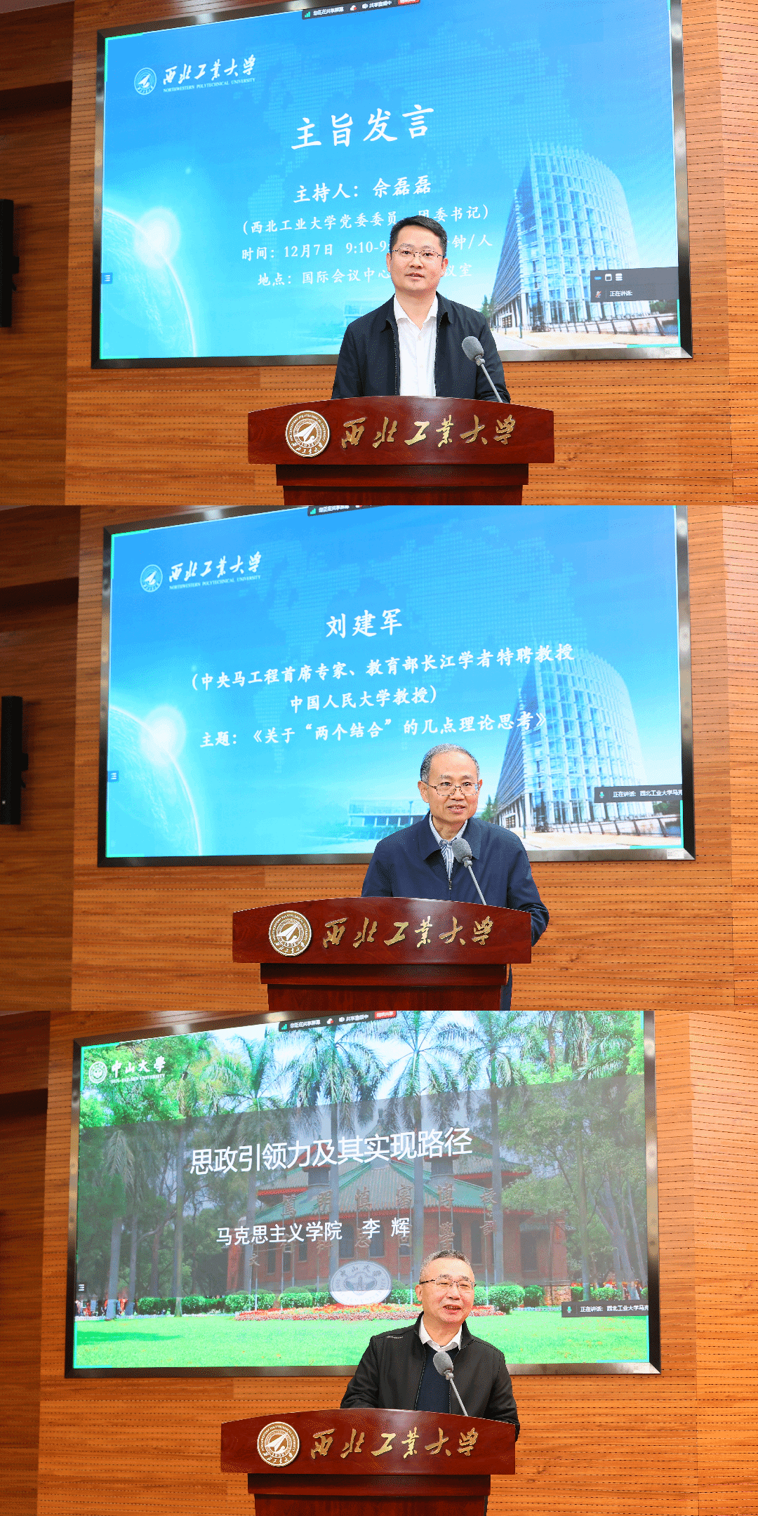 开幕式后,主旨发言由国产直播 团委书记佘磊磊主持。在主旨发言中,中国人民大学刘建军教授、中山大学李辉教授作了精彩纷呈的发言。中央马克思主义理论研究和建设工程首席专家、国家领军人才、教育部特聘教授刘建军围绕“关于‘两个结合’的几点理论思考”这一主题进行了主旨发言,从定位、层次、又一次思想解放、新的文化生命体四个方面深入浅出的解读了关于“两个结合”的几点思考。国家教学名师,李辉教授作了“思政引领力的可行路径”的主题报告。他从自身经历出发,从思政引领力的内涵、影响思政引领力的因素、思政引领力实现的路径方面进行了深入的探讨。