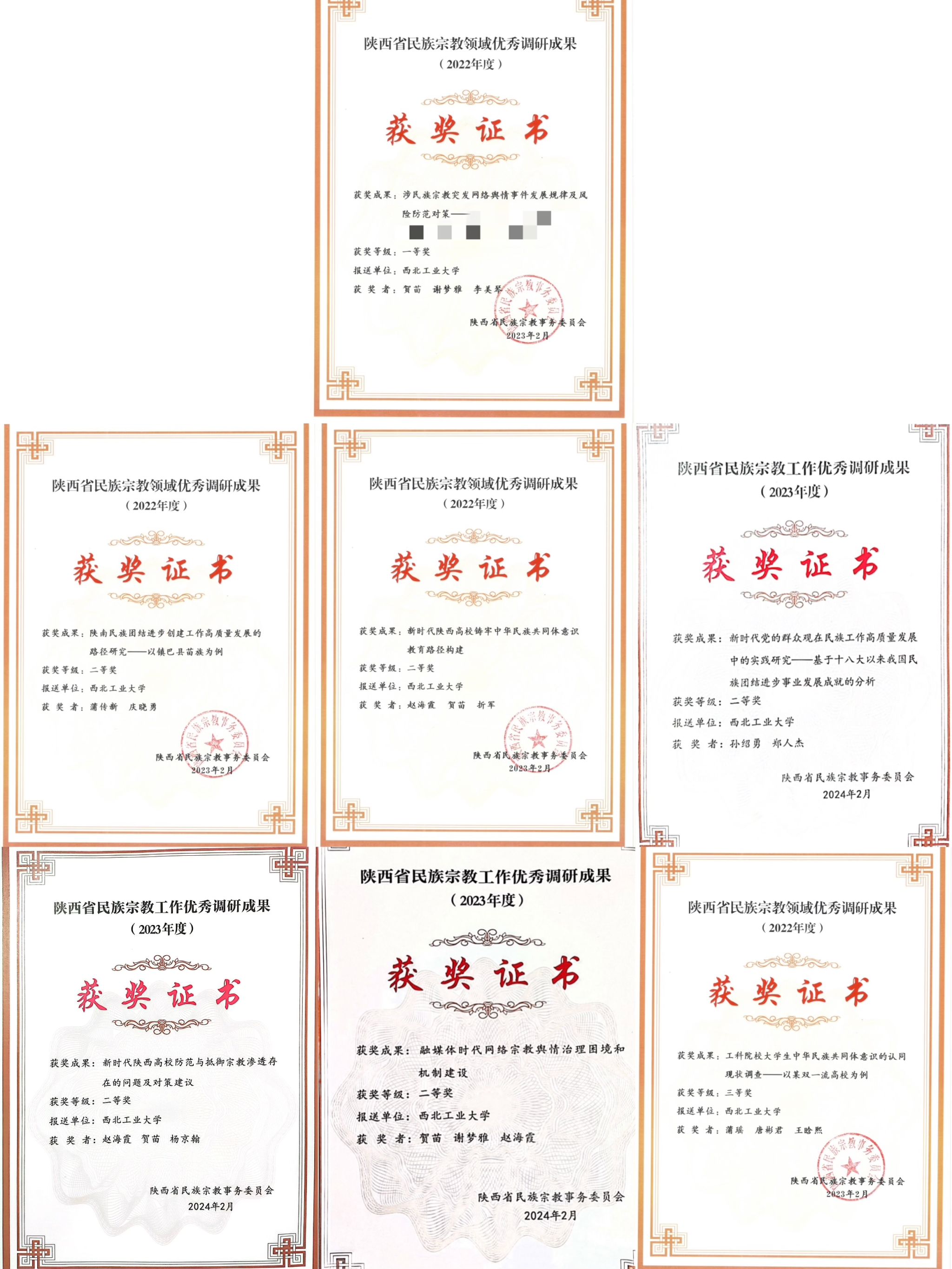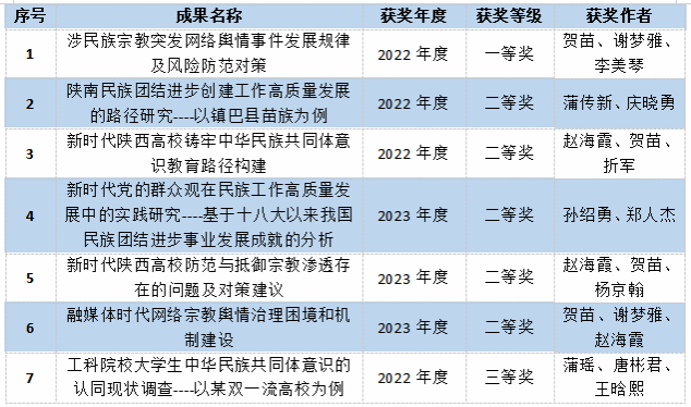 2024年初,陕西省民族宗教事务委员会公布了近2年民族宗教工作优秀调研成果获奖名单。国产直播 国产直播 2022、2023两年共7项成果入选,其中一等奖 1项、二等奖 5项、三等奖1项。