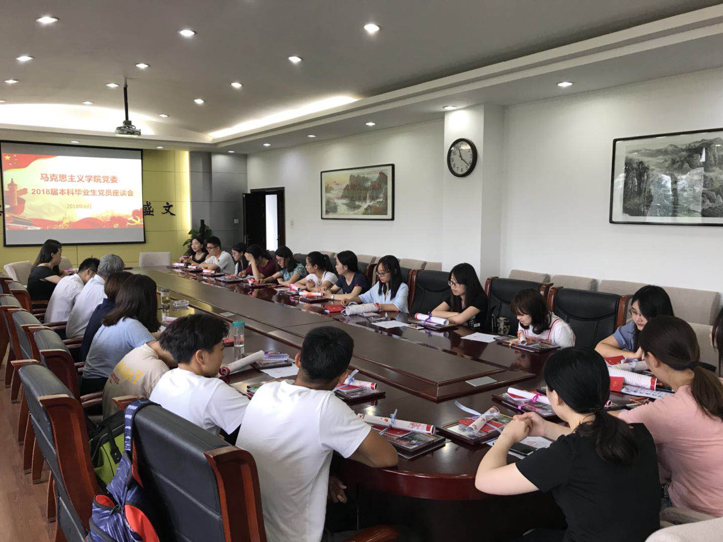党委在学院208会议室召开2018届本科毕业生党员座谈会,学院党委书记鲁卫平,学生党建主管、辅导员曹良玉以及2018届本科毕业生党员参加了座谈会,会议由党委副书记袁源主持。