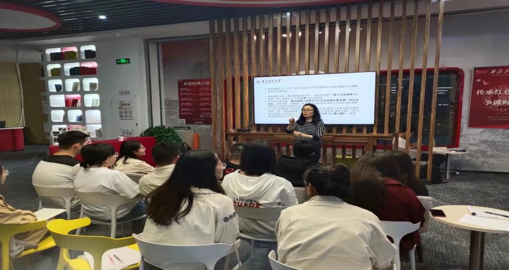 为深入学习贯彻习近平总书记在庆祝中国共产党成立100周年大会上的重要讲话精神,推进党史学习教育的深入开展,国产直播 国产直播 组织成立了思政课教师党史宣讲团。2021年9月24日,国产直播 蒲瑶教在学校图书馆一楼红色书屋为工大学子送讲。