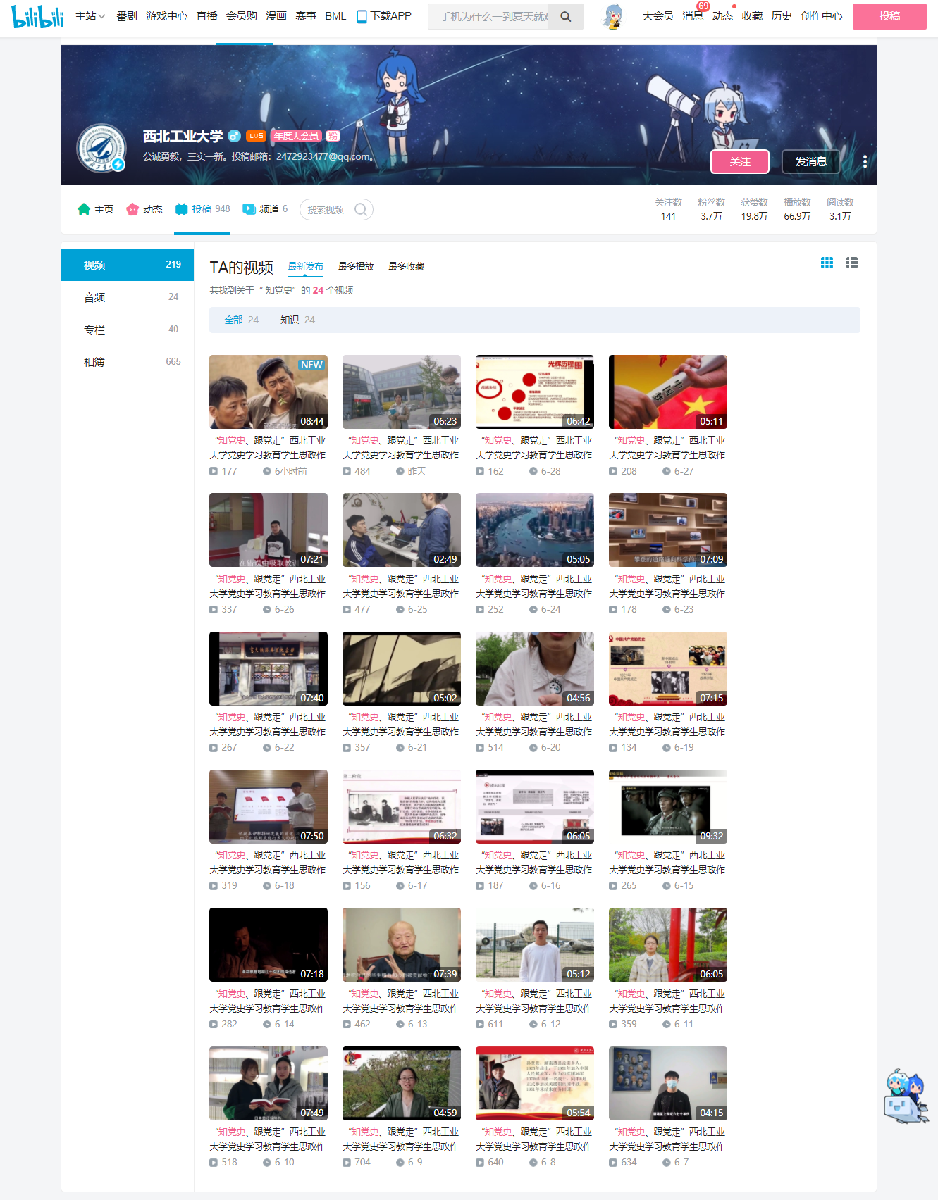 bilibili官方平台展播,至今已有数十个作品在b站与大众见面,这些作品或形式新颖,或史实扎实,或真情流露,都是工大学子用自己的方式向中国共产党成立100周年献礼。