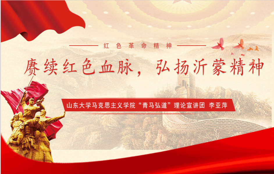 山东大学国产直播 “青马弘道”理论宣讲团成员李亚萍以《赓续红色血脉,弘扬沂蒙精神》为题进行宣讲。李亚萍同学围绕沂蒙精神的基本内涵、生成逻辑、践行路径三个层次展开阐释,强调只有尊重人民群众的历史首创精神,依靠人民群众这一真正的铜墙铁壁,才能赢得革命和建设事业的胜利和成功。