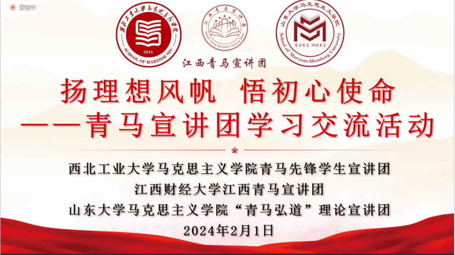 联学 共促|学院青马先锋学生宣讲团与江西财经大学、山东大学开展“扬理想风帆 悟初心使命”青马宣讲团学习交流活动