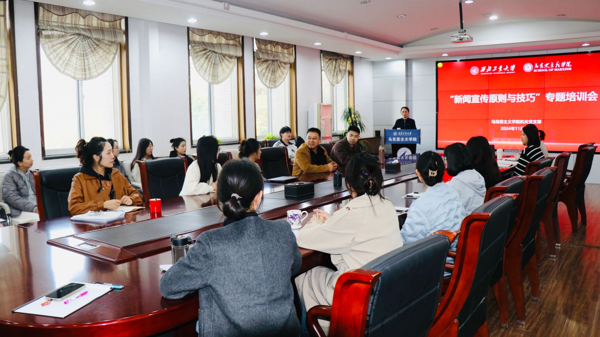 11月5日下午,国产直播 国产直播 机关党支部开展新闻宣传专项工作培训会。培训会邀请校党委宣传部融媒体中心付怡作为主讲嘉宾。本次培训会吸引了学院机关党支部全体成员、辅导员以及来自各兄弟学院的师生等40余人参与。会上,与会师生积极互动,认真倾听并记录重点,气氛热烈。会议由学院党委书记王彦革同志主持。
