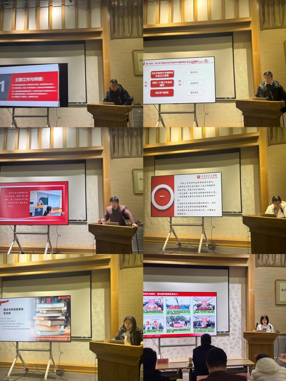 会议伊始,王彦革介绍了学校《关于开展2024年度党支部书记抓党建述职评议考核的通知》的主要内容和工作要求。随后,各教工党支部书记重点围绕“突出学习贯彻习近平新时代中国特色社会主义思想主题主线”“突出强化党支部政治功能和组织功能”“突出落实基层党建工作重点任务和加强党员队伍建设、突出做好师生思想政治教育”“突出落实全面从严治党要求”“存在的问题和下一步计划”以及“亮点工作”7个方面依次开展现场述职。各教工党支部书记用具体事例和数据支撑,客观、详实地展示了党支部一年来取得的成绩,全面总结了2024年度的工作情况。