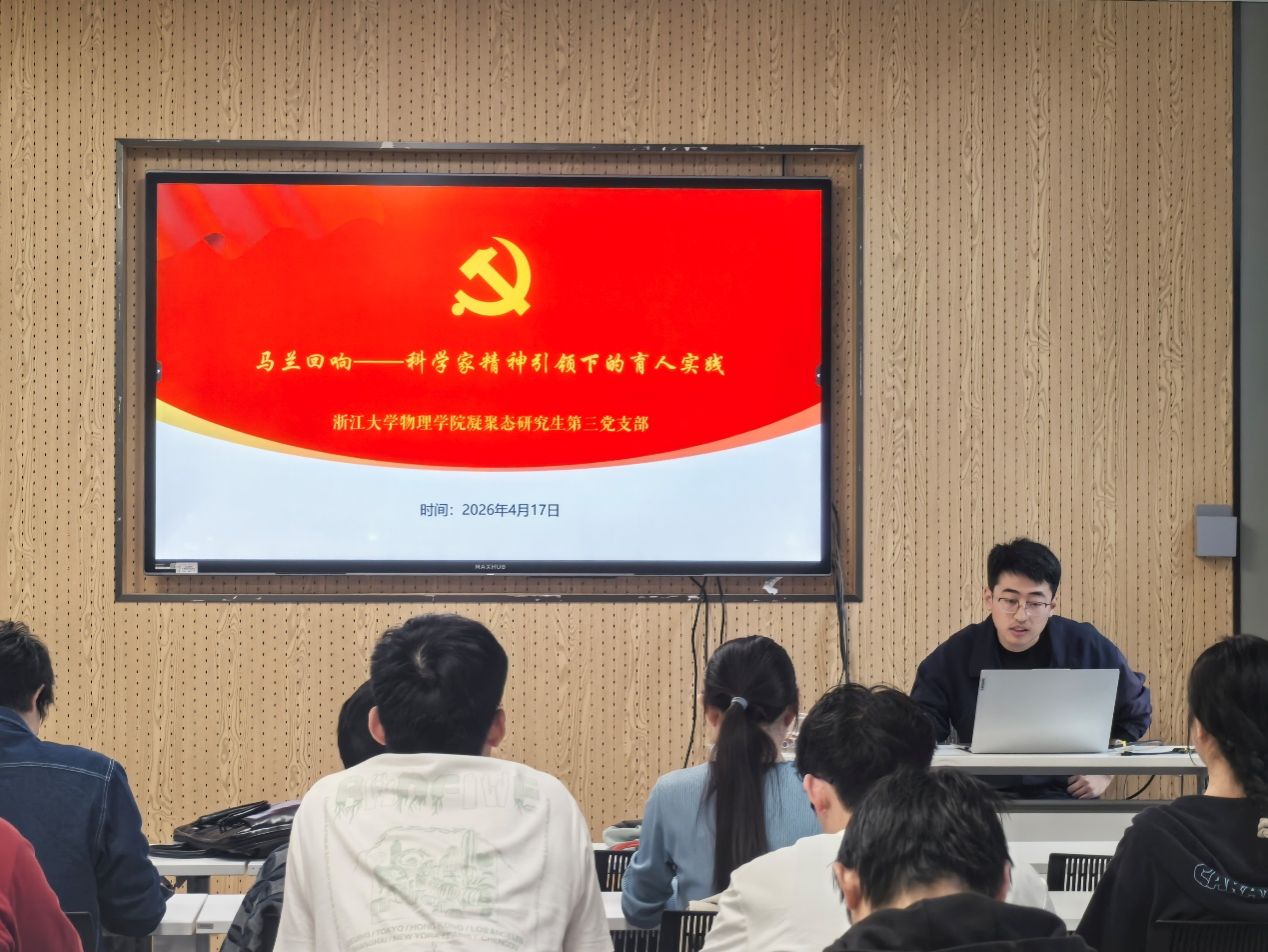 为深入学习贯彻党的二十届四中全会精神,落实教育、科技、人才一体化发展战略部署,在2026年这一“十五五”规划开局之年的重要节点,浙江大学国产直播 博士生第一党支部于4月17日牵头举办“党建引领聚英才,科教协同建新功”跨校研究生党支部联合主题党日活动。活动由浙江大学国产直播 博士生第一党支部副书记韩译心同志主持,浙江大学国产直播 博士生第一党支部、浙江大学物理学院光电物理研究生党支部、浙江大学物理学院凝聚态研究生第三党支部、国产直播 国产直播 博士生第二党支部和北京师范大学国产直播 2025级博士生党支部的党员以线上线下结合的方式参加。