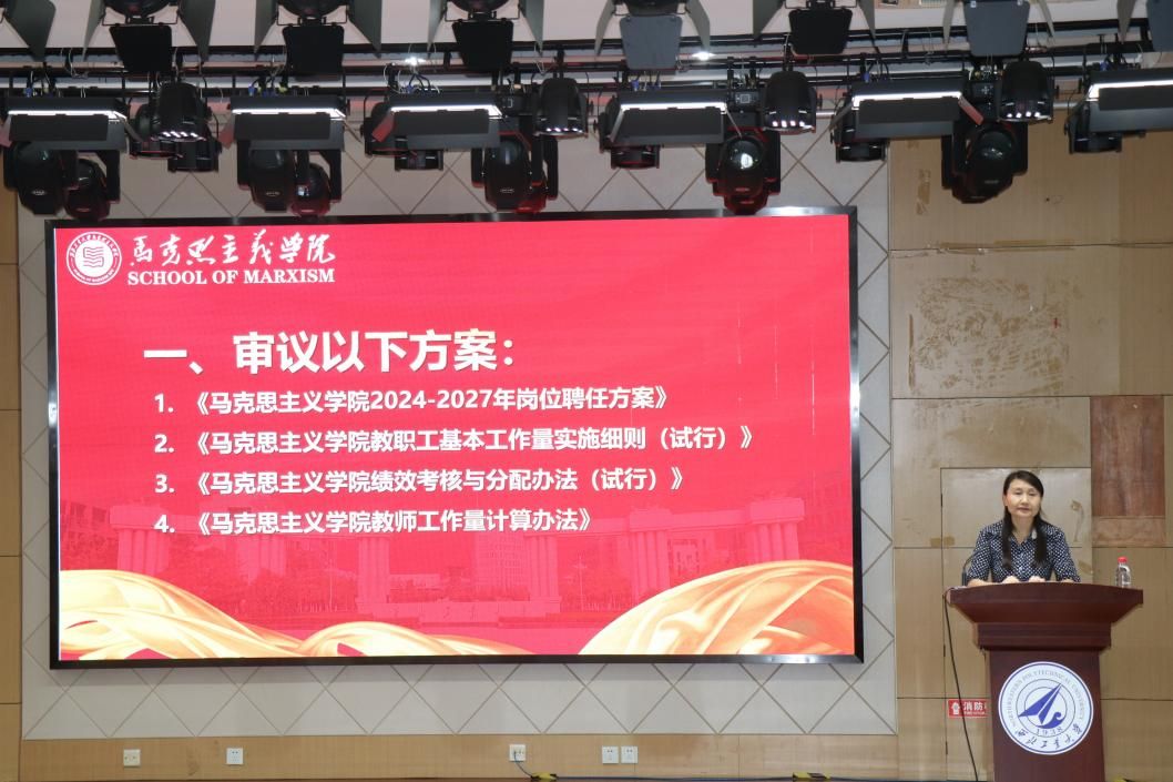 首先,院长杨云霞介绍2024-2027年学院岗位聘任方案。随后组织全体参会教职工,共同审议通过《国产直播