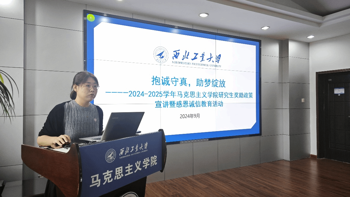 于2024年9月4日开展了研究生奖助政策宣讲暨感恩诚信教育主题活动,此次活动由学院兼职辅导员邵明岚主持。