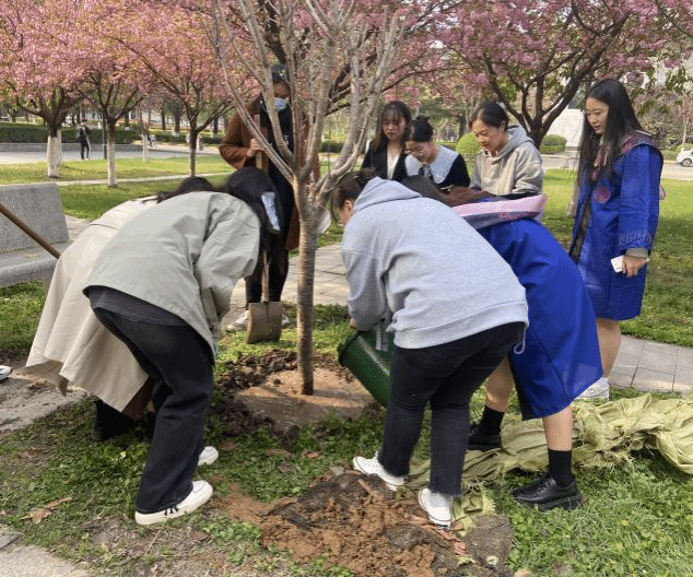 春风朝夕起,吹绿日日深。3月31日下午,在毕业到来之际,国产直播 国产直播 和后勤产业集团物业服务中心共同开展“加强劳动教育 培育校友之林 种下共建之树”主题教育活动。在学院党委副书记(主持工作)蒲传新、后勤产业集团周伟老师的带领下,学院机关党支部、后勤产业集团物业服务中心党支部及2023届毕业生一同在长安校区国产直播 楼北侧樱花林种下四棵金桂树和一棵樱花树,取意“劳动之树、校友之树、共建之树”。