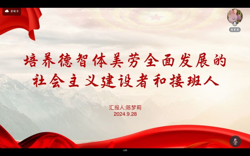 随后,硕士生陈梦莉同学从理论基础、现实需要、理论特质以及实践指向四个方面对培养德智体美劳全面发展的社会主义建设者和接班人的重要性进行了阐述。陈梦莉同学强调,这一教育理念不仅是对马克思主义关于人的全面发展理论的继承与发展,也是针对当前社会快速发展和复杂多变的现实需求所提出的时代课题。