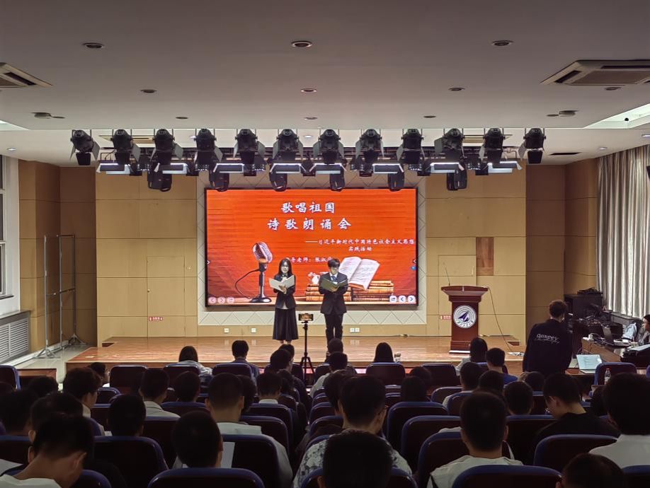 朗诵会分线上和线下两个环节,21个小组经过抽签登台表演,其他小组线上提交作品参赛。现场同学们围绕“歌唱祖国”“弘扬工大精神”和“反映新时代伟大变革”等主题,饱含深情歌唱对祖国的无限热爱与崇高敬意,抒发《航天逐梦》《翱翔》《星辰大海》的理想,礼赞《盛世华章》《民族团结永不息》《新思想引领中国梦》的成就,诉说《乡村与祖国的交响》《大山的故事》,表达《以青春之我·创造青春之中国》的万丈豪情。同学们声情并茂的朗诵、真诚投入的表演,配合精心准备的视频、背景、画外音,赢得了现场观众的阵阵掌声。